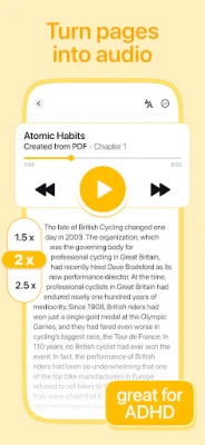 Listen AI sniedz vēl vairāk iespēju. Izmantojiet tā OCR kameru, lai skenētu tekstu no fiziskiem avotiem, piemēram, grāmatām, un acumirklī pārvērstu to augstas kvalitātes audio. Vai nepieciešams pierakstīt domas? Mūsu runas-tekstā funkcija precīzi pārvērš jūsu balss ierakstus rakstītā tekstā, noderot sapulču transkripcijām vai ātrām piezīmēm. Lietotne ir izstrādāta, domājot par pieejamību, piedāvājot atbalstu disleksijas gadījumā ar spilgtu izcelšanu un regulējamu lasīšanas ātrumu. Uzlabojiet savu mācību procesu, patērējot akadēmiskos materiālus paātrinātā tempā un uzlabojot izpratni. Lai nodrošinātu nepārtrauktu klausīšanos, Listen AI ļauj eksportēt tekstu MP3 formātā, veidojot savu audio bibliotēku, kas pieejama bezsaistē jebkurā laikā un vietā.