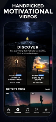 Papildus video saturam, Motivate piedāvā tūkstošiem iedvesmojošu citātu, ko varat aplūkot, saglabāt, kopīgot vai attēlot savā sākuma ekrānā ar ērtu logrīku. Izbaudiet ekskluzīvu mūziku, kas palīdzēs jums justies iedvesmotam, enerģiskam, atslābinātam vai koncentrētam, neatkarīgi no tā, vai esat darbā, sporta zālē vai vienkārši meklējat papildu impulsu. Mūsu "Runātāju" un "Dzīvesveida" sadaļas sniegs ieskatu pasaules līderu domās un aizraujošos piedzīvojumos, savukārt "Gudrība" aicinās paplašināt jūsu redzesloku ar dziļām filozofiskām atziņām. Motivate ir jūsu ceļvedis uz pārmaiņām un nepārtrauktu izaugsmi.