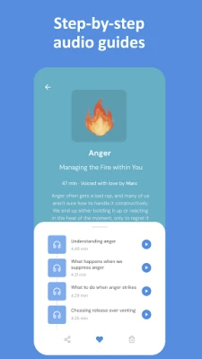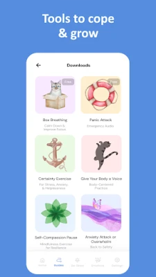 Myselfland piedāvā virkni rūpīgi izstrādātu rīku, kas balstīti uz neirozinātnes atziņām un atzītām terapijas pieejām, piemēram, kognitīvi biheiviorālo terapiju (CBT) un pieņemšanas un apņemšanās terapiju (ACT), kā arī apzinātības un ķermenī balstītām praksēm. Šeit jūs atradīsiet: Soli pa solim audio ceļvežus, kas sniegs konkrētas stratēģijas, lai risinātu dažādas problēmas – no trauksmes un stresa līdz sarežģītām emocijām kā dusmas vai skumjas, kā arī palīdzēs uzlabot attiecības un paaugstināt pašcieņu. Pašpalīdzības rīkus un vingrinājumus, kas piedāvā vienkāršas, bet efektīvas tehnikas panikas lēkmju mazināšanai, stresa pārvarēšanai un emocionālas līdzsvarošanas panākšanai, iekļaujot elpošanas prakses, zemējuma vingrinājumus un apzinātības meditācijas. Emociju navigatoru, kas ir inovatīvs rīks un palīdzēs jums labāk izprast un apstrādāt jūtas, attīstīt apzinātību un izaicināt nelietderīgus domāšanas modeļus, virzoties uz konstruktīvu emocionālo risinājumu.