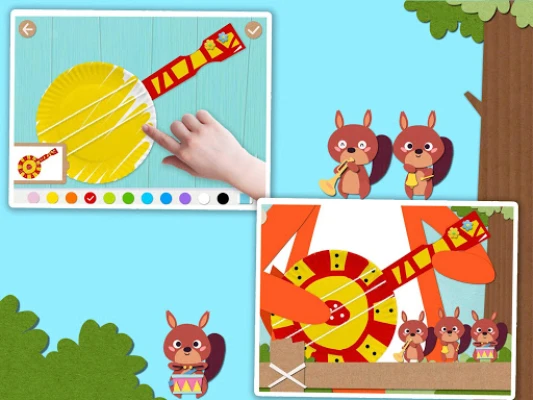 Lietotnes centrā ir 15 soli pa solim vadītas interaktīvas nodarbības, kas iepazīstina ar dažādu amatu izveidi. Bērni varēs viegli izgatavot tādas jaukas figūras kā suns, vista, pīle, mūzikas instruments, automašīnas, zilonis, varde, briesmonis, pingvīns un cūka. Katrs radošais process ir veidots tā, lai būtu gan vienkāršs, gan neticami jautrs, mudinot bērnus pašiem eksperimentēt. Kad amats ir pabeigts, jaunie mākslinieki var to iekrāsot, izvēloties no 11 skaistiem toņiem, un saglabāt savus neierobežotos darbus īpašā galerijā, lai ar tiem varētu lepoties un dalīties ar citiem.