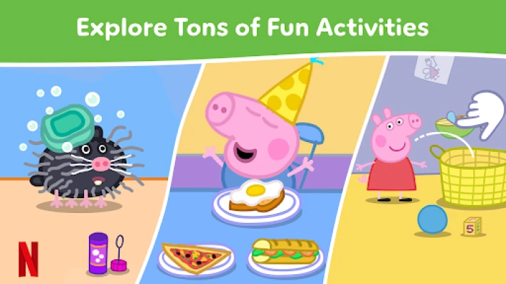 Ienirstiet interaktīvu spēļu un radošu aktivitāšu virpulī, kas veidotas, lai attīstītu bērnu iztēli un prasmes. Peppa un viņas draugi aicina iesaistīties aizraujošās nodarbībās: salikt krāsainas puzles, konstruēt unikālas rotaļlietas, rūpēties par mīlīgiem jūrascūciņām Peppas dārzā vai pat pagatavot gardus kokteiļus Kaķenei Kendijai. Katra aktivitāte ir veidota ar mīlestību, lai rosinātu loģisko domāšanu, radošumu un līdzjūtību, vienlaikus saglabājot Peppas pasaules sirsnīgo gaisotni.